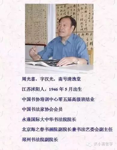 本次联展作者之一的周光喜先生,2000年从机关领导岗位退居二线后才学习书法。虽起步较晚,但坚毅执着,每日茶饭而外,庶几全归于书,数年一日,孜孜案头,殷殷笔砚,博观悦取,强学笃行。既思之以理取之以法,又摩之以形传之以神,广采博纳,取法百家,终于摸索出一条“寻门而入,破门而出”之道,推陈出新,自成一家,形成了疏淡秀雅、奔放纵逸、峻拨潇洒的风格。本次展出的55幅书法作品,汇集了周光喜先生近年心力,有条幅、手卷、册页、扇面等多种样式,体裁风格多样,展示了作者书法艺术的新成就。