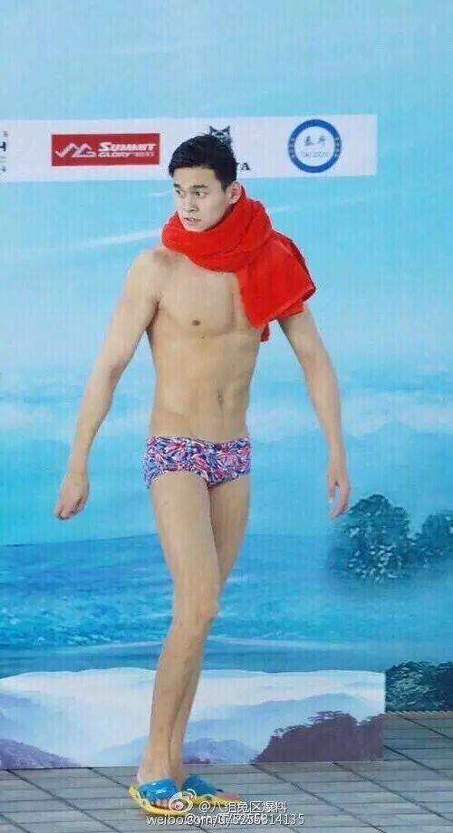 然而孙杨不满足于一种款式。还开发出了新的浴巾时尚: