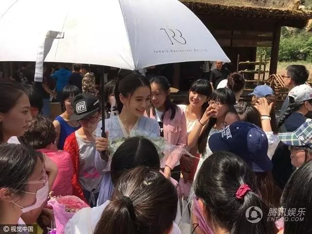 虽然拍戏辛苦,但baby对于前来探班的粉丝也是very亲切:
