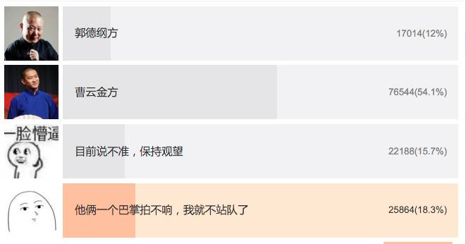 有网友做了个投票,目前情况似乎舆论是向徒弟曹云金方向一边倒的趋势: