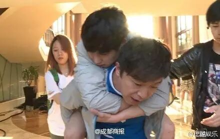 张艺兴生病了,他又马上背着小绵羊去医院。