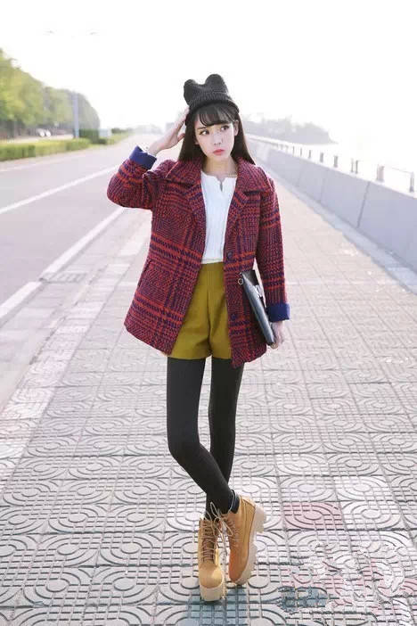 TIP1 转移注意。选择高亮度的毛呢外套,这样可以抢走其他地方的注意点。