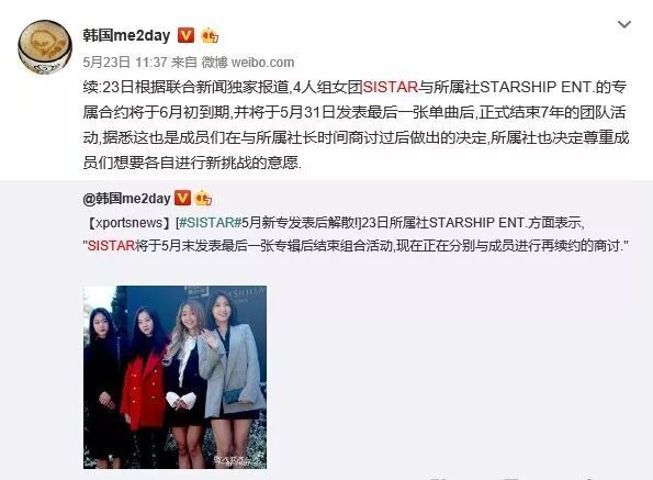SISTAR创造了很多夏日神曲,但可惜于2017年5月23日,成员们在粉丝官咖上留言发表了解散的决定。