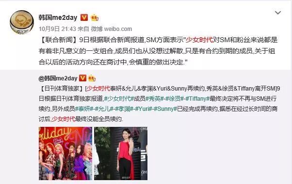 今年10月9日,成员Tiffany、秀英、徐贤与公司合约到期,并决定不再续约。
