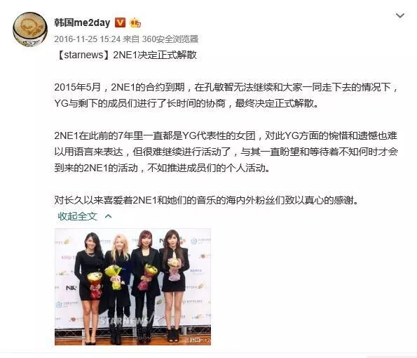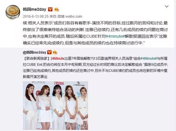 遗憾的是,2016年6月13日,公司宣布经过五名成员的共同商议,决定组合4MINUTE正式解散。