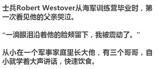 “表露情感,对男人来说,是不行的。”Robert Westover说。