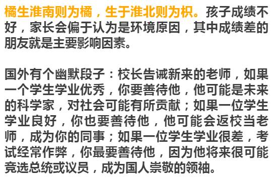 以前看到一个读者后台留言说,以前成绩好的时候,父母见到他朋友会问他们成绩怎样,如果不好就让他少接触。后来成绩差了,他们就认定是和成绩差的人混在一起的缘故,要求远离他们。