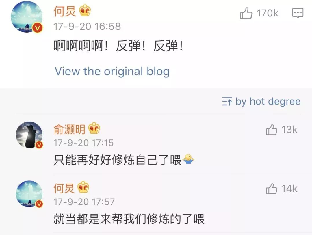 还有何老师更加可爱了,回应了“啊啊啊啊!反弹反弹!”表示他们都是来帮我们修炼的。赞赞~