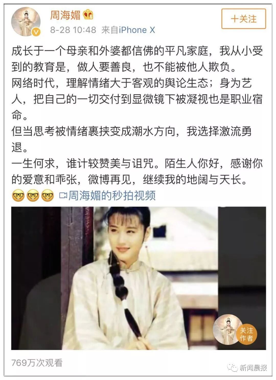 28日,周海媚突然声明退出微博,引起网友震惊。