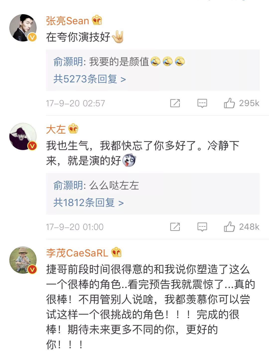 之后张亮,大左,李茂等明星都在下面纷纷力挺俞灏明演技好,别理这些无聊的人。