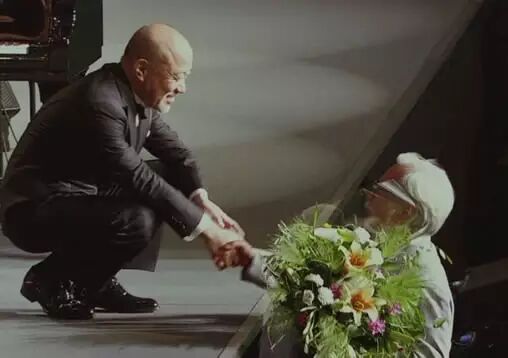 久石让赶忙走到舞台边,蹲下身,接过花束。两位大师握手、亲切地交谈,然后一同向观众鞠躬行礼。宫崎骏快步走回座位后,轻轻地抹了一下眼角的泪水,而久石让的眼睛一直红到下一个曲目开始。