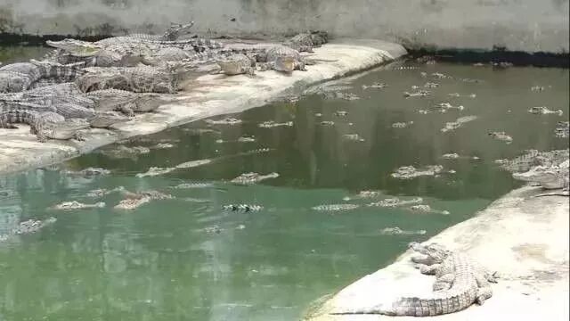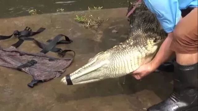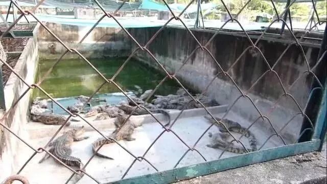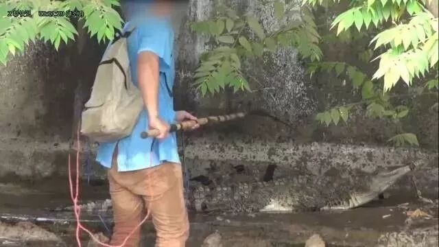 ▲鳄鱼脊柱直接被插入钢条,整个过程鳄鱼是活着的。