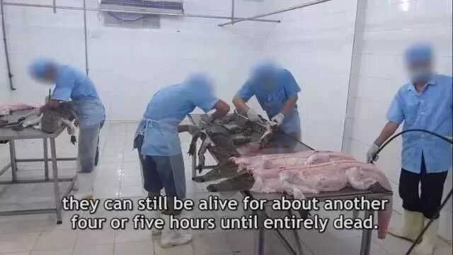 动物在被割喉之后剥皮,这个过程仍然活着!