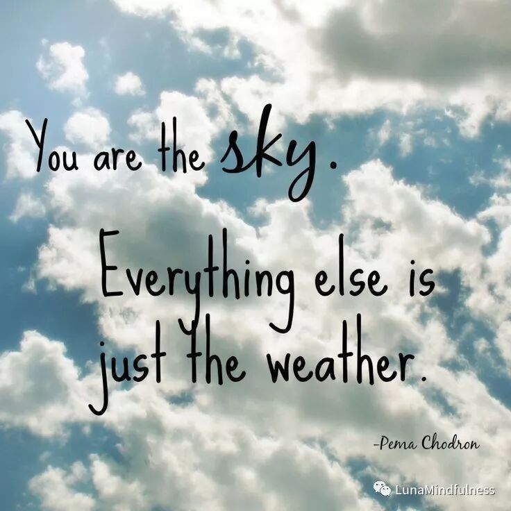 Through sustained mindfulness practice, we develop awareness of our thoughts and emotions and learn to notice them rather than judge them. We develop compassion towards ourselves in a way that teaches us to smile at our mind rather than tying ourselves in knots. Sometimes our minds are hazy, dark and cloudy, even stormy. We can learn to be with our weather, remembering that sooner or later the weather will change. Appreciate the sunny days and make peace with the clouds and the storms as they pass through.