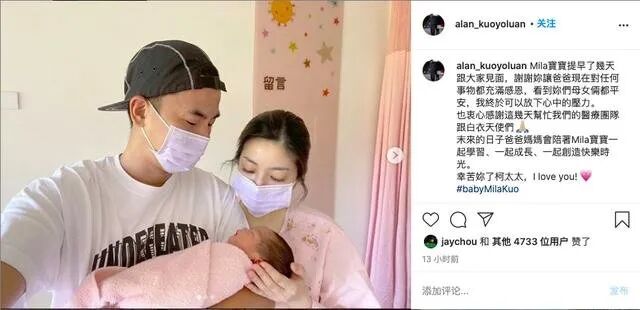 柯有伦在配文中写道:"Mila宝宝提早了几天跟大家见面,谢谢你让爸爸现在对任何事物都充满感恩,看到你们母女俩都平安,我终于可以放下心中的压力。"