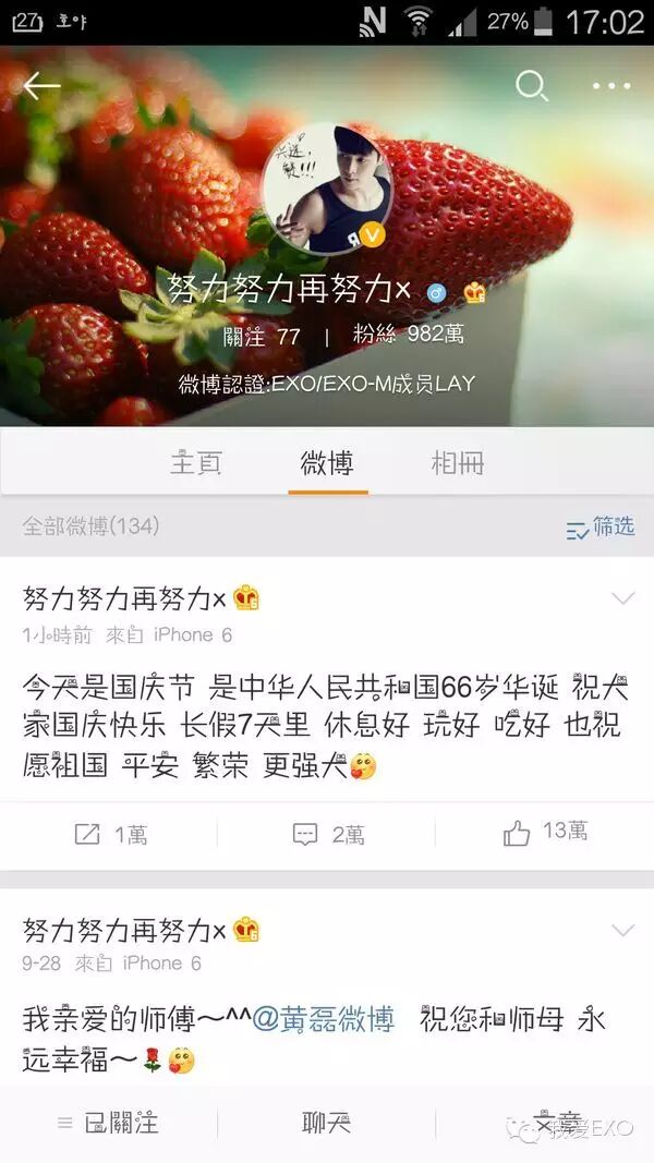 【EXO新闻】151001 Lotte Conf脸书更新EXO-K相关
