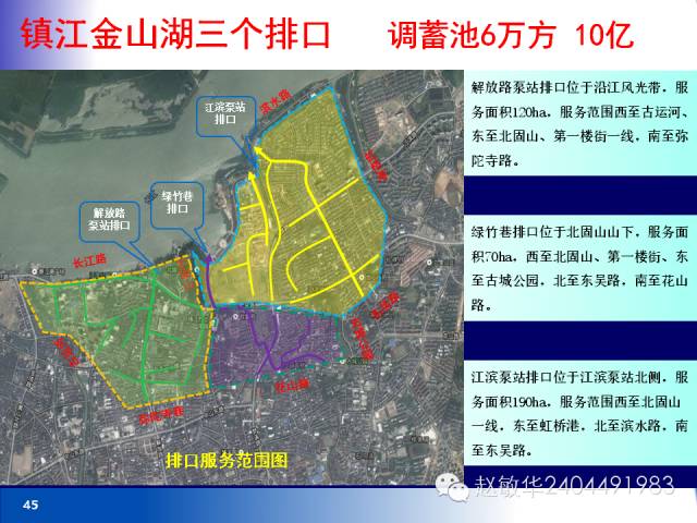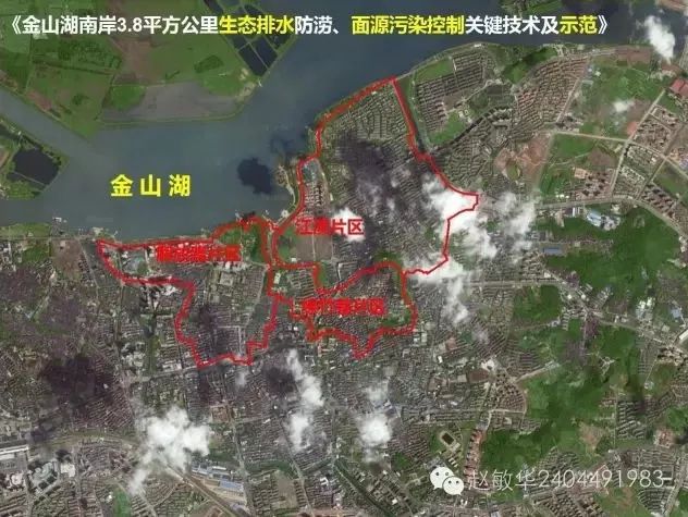 镇江老城区北边是金山湖,因为城市面源及合流污染,南边老城区雨水泵站的溢流污染排放,造成金山湖排水口附近的水体黑臭。