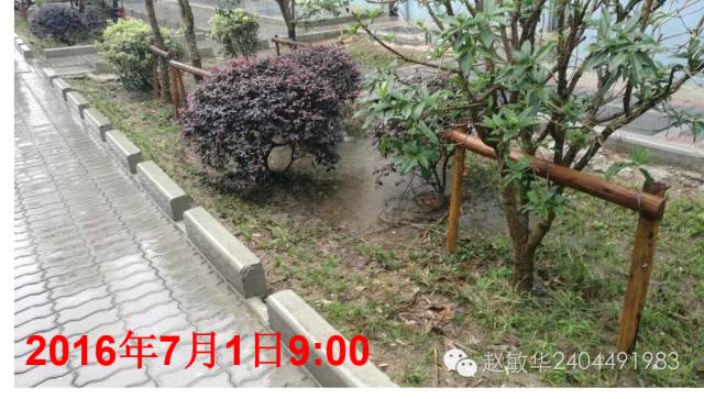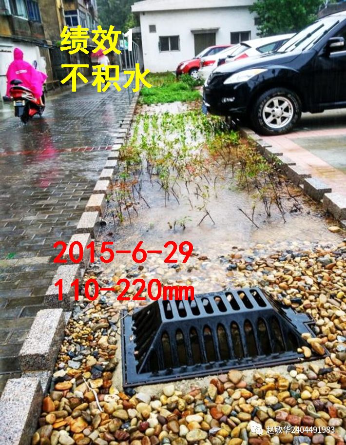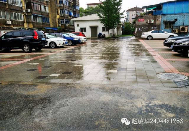 江二海绵停车场做好后,2015年6月29日又来一场更大的暴雨,没有改造的隔壁小区积水了,江二社区因为海绵停车场改造完成就没有没水,雨水全渗下去了。