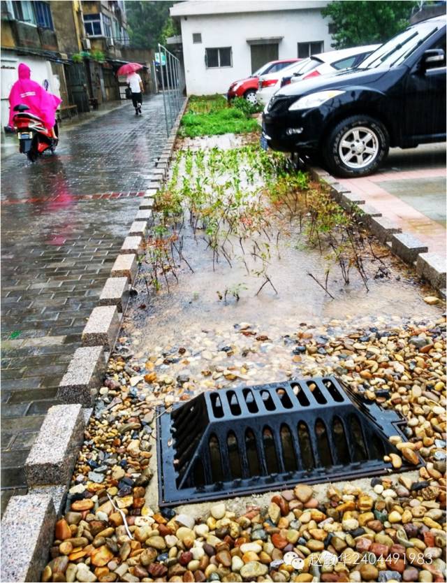 但是雨水很快全部渗下去了,因为生态停车场下面都是空隙,雨水花园下面还可以蓄水,下边就是刚刚说的那个蓄水构件。