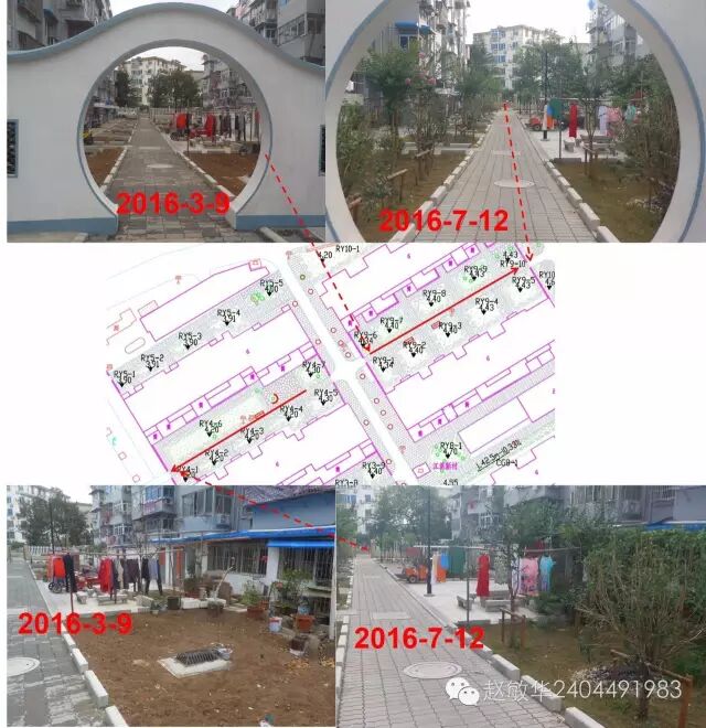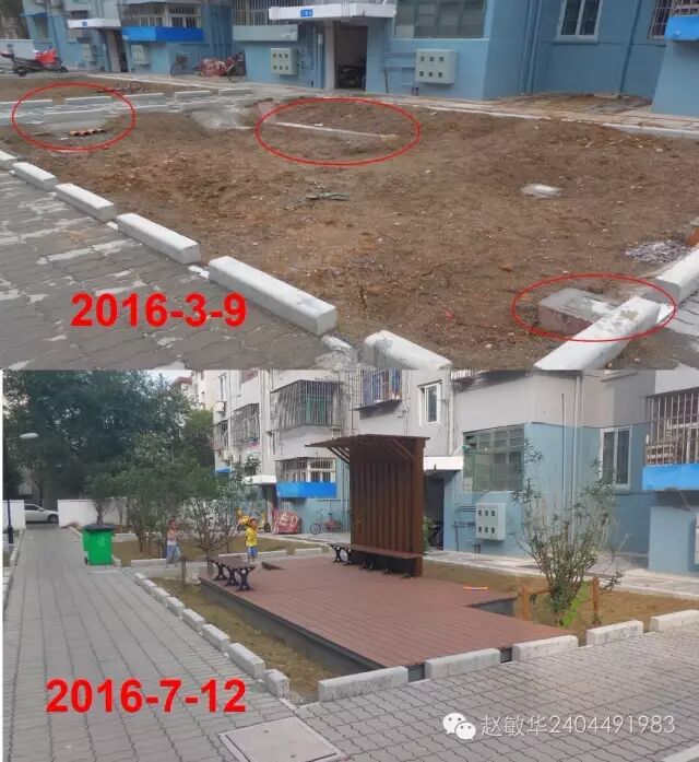 7月12日上午评审结束后,下午我又去了江二社区现场。把3月9日和7月12日两组照片,做一个对比: