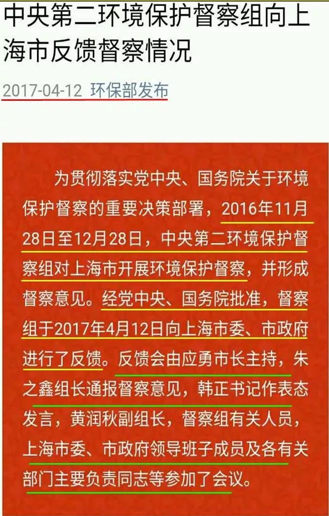 从去年中央环保督查开始讲起。2017年4月12日,向上海市委市政府反馈,
