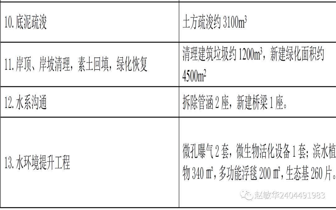 包括护岸、绿化、水生植物、土方疏浚,今年1月排了一条污水管。