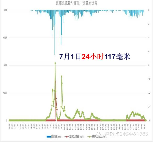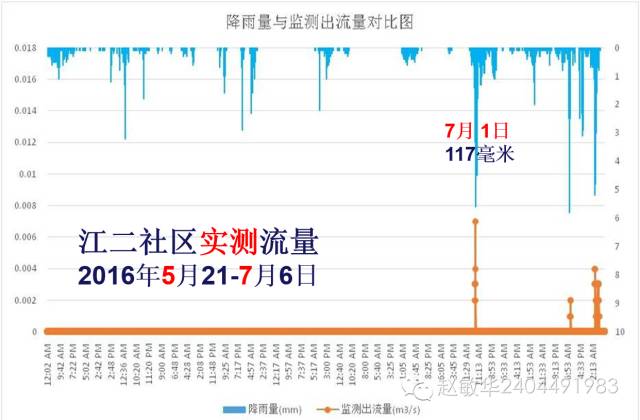 他们进行了同步监测,从5月21日到7月6日,都是10毫、20毫米、50毫米降雨,到了7月1日的117毫米大暴雨才开始出流,