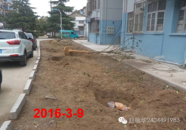设计负责人说树种上去过,被一楼的居民推倒,为什么推倒?我下面说,所以树就倒放在那。