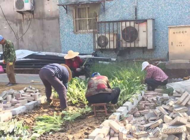 照片中的一小块活动场地和几个花盆,居民不让动,这一家比较难搞,因为他本来就有这几个石凳子,所以就留着了。