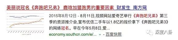 鹿晗从韩国回到北京之后,最好的资源该是《奔跑吧兄弟》。2015年下半年,美丽说出巨资3.38亿元冠名了《奔跑吧兄弟》第三季,不久后品牌代言人鹿晗宣布加盟《奔跑吧兄弟》。