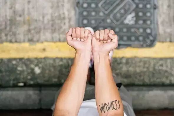 ▼右手小臂上纹身了14年开创的新的个人品牌 - MADNESS。