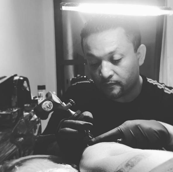 ▼位置于左手大笔上的两个黑灰写实风格的人物肖像,乍一看毛骨悚然,但了解其中的故事,是那么的温馨。这仅仅属于他自己的,因为纹的是他最亲的两位亲人:阿姨和外婆