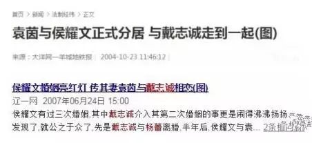 相传戴志诚与侯耀文的老婆袁茵好上了,他们离婚的时间点很接近。