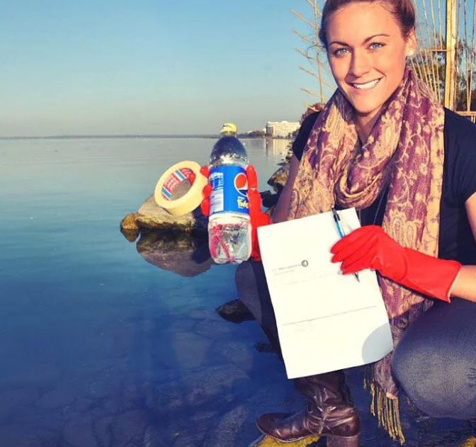 她的大学毕业于环境科学专业,Cassie在旅途中参与了一项关于“塑料微粒的采样”的调研工作,采集了这一路上各地的河海湖水样,寄到美国ASCS实验室,做相关研究。