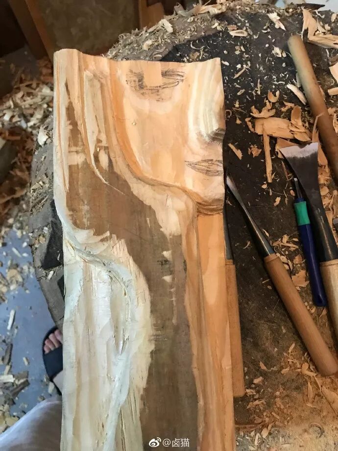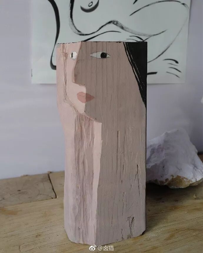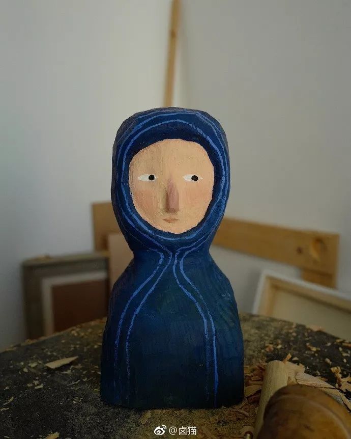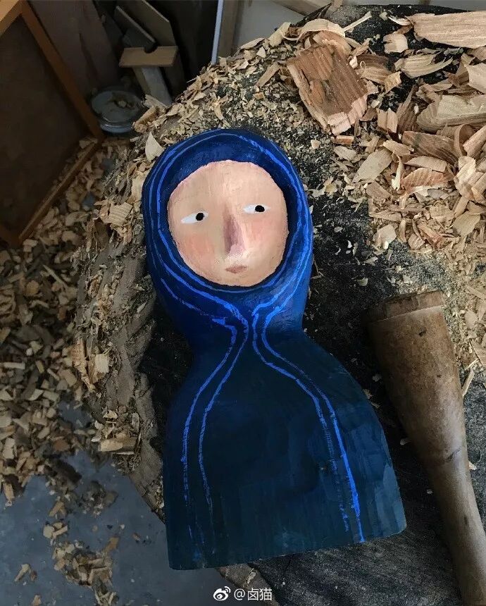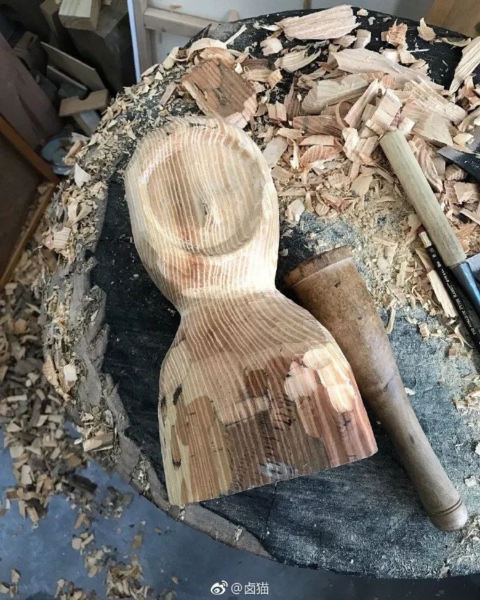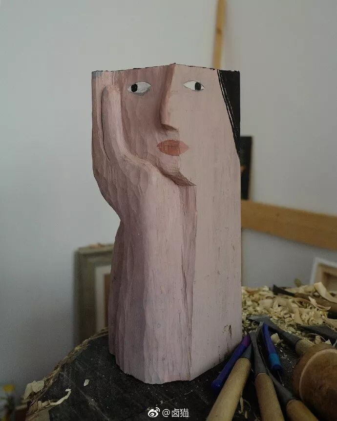 将自己画的人物形象以木雕的形式展现出来