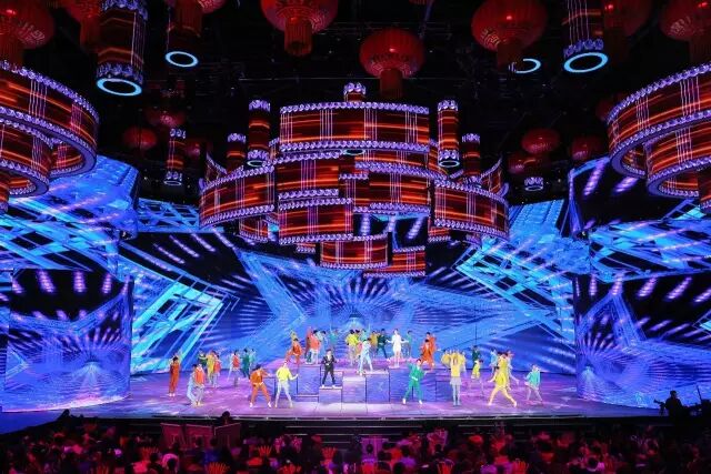 鸡年元宵晚会的主舞台视觉效果再度升级,融入赏花灯、糖葫芦、转风车、舞龙、舞狮子等各地元宵节的传统活动元素,在360度环绕大屏的配合下,整个晚会宛如一个大庙会的热烈场景。