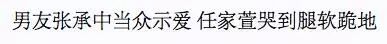 现场粉丝顿时一片沸腾,张承中继续以“老婆我爱你”婉转求婚。又惊又喜的Selina哭到腿软跪地,惊呼:“你叫我什么?天啊,妈妈我终于可以公开恋情,大家值回票价。”