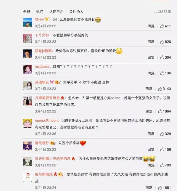 @花沫沫沫:“我希望离婚新闻是假的,因为希望你永远幸福。”