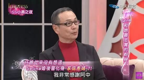 任爸曾在《SS小燕之夜》上谈到对阿中的感觉,提到“虽然他比较沉默寡言,但非常感恩他,因为他跟她(Selina)一块走过这路”。