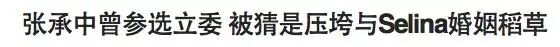 张承中是律师出身,父亲是前立委张世良,他2015年9月宣布以无党籍身分参选台北松山信义区立委。阿中也坦言,其实不希望看见Selina助选,我希望家人不要干涉或涉入。