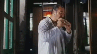 等老敏上菜,被他催着“假吃”时,才顺手朝老敏眼前一递。