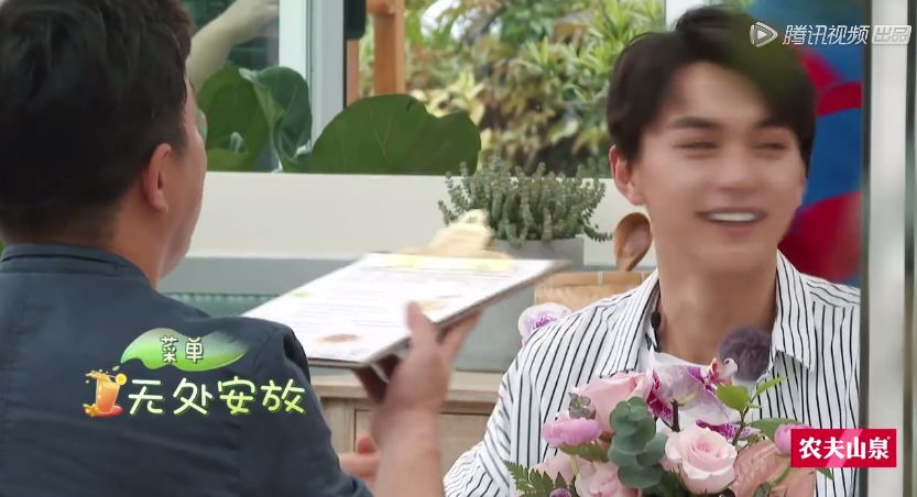 黄渤呢,也不叫喊,只是举高菜单试图引起他注意。