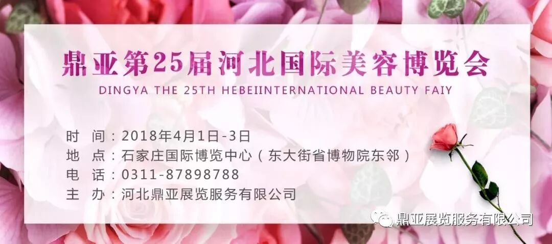 功能介绍:鼎亚第25届河北国际美容博览会 时 间:2018年4月1日-3日 地 点:石家庄国际博览中心(省博物馆东邻) 电话:0311-87898788