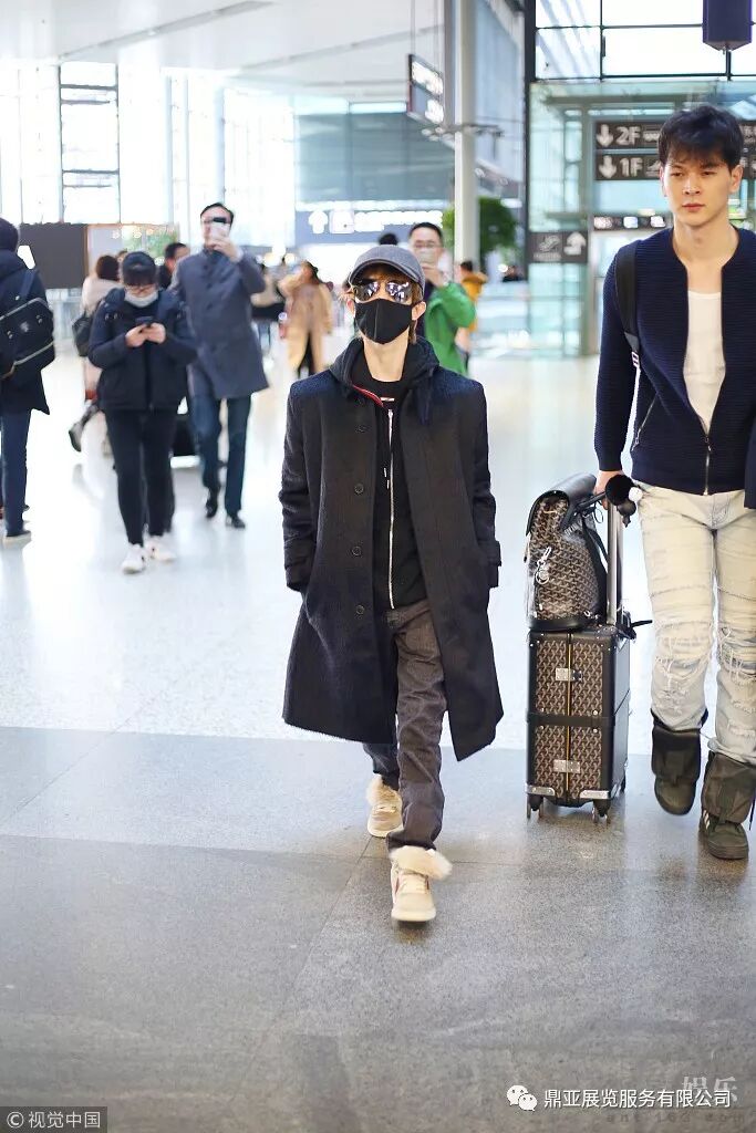 1月14日,上海,郭敬明现身机场,口罩帽子遮面全副武装,长大衣巧遮短腿,与高大男助理并肩行成最萌身高差。