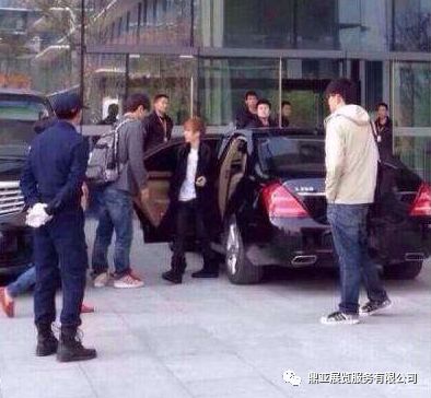 郭敬明和助理在高铁站,助理帮郭敬明推行李