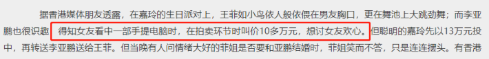 王菲对某个手提电脑很感兴趣,李亚鹏直接一口开价10多万,就为了拿回这个电脑讨王菲开心。(不过最后还是由寿星刘嘉玲做了个顺水人情)