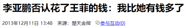 虽然李亚鹏确实在王菲身上花了很多钱,但论经济论实力,王菲都要远远超过自己。