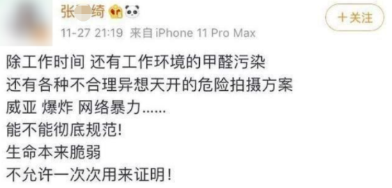 演员张某玥曾经在直播中自曝: