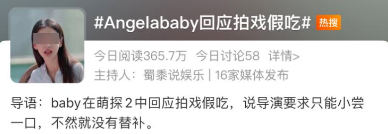 前段时间在纷纷扰扰的信息中,“Angelababy回应拍戏假吃”登上了热搜,又一起引爆了全网。