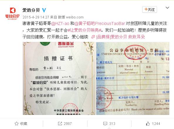 海浪们360度让公益潮席卷到各个方面,这就很黄子韬了。